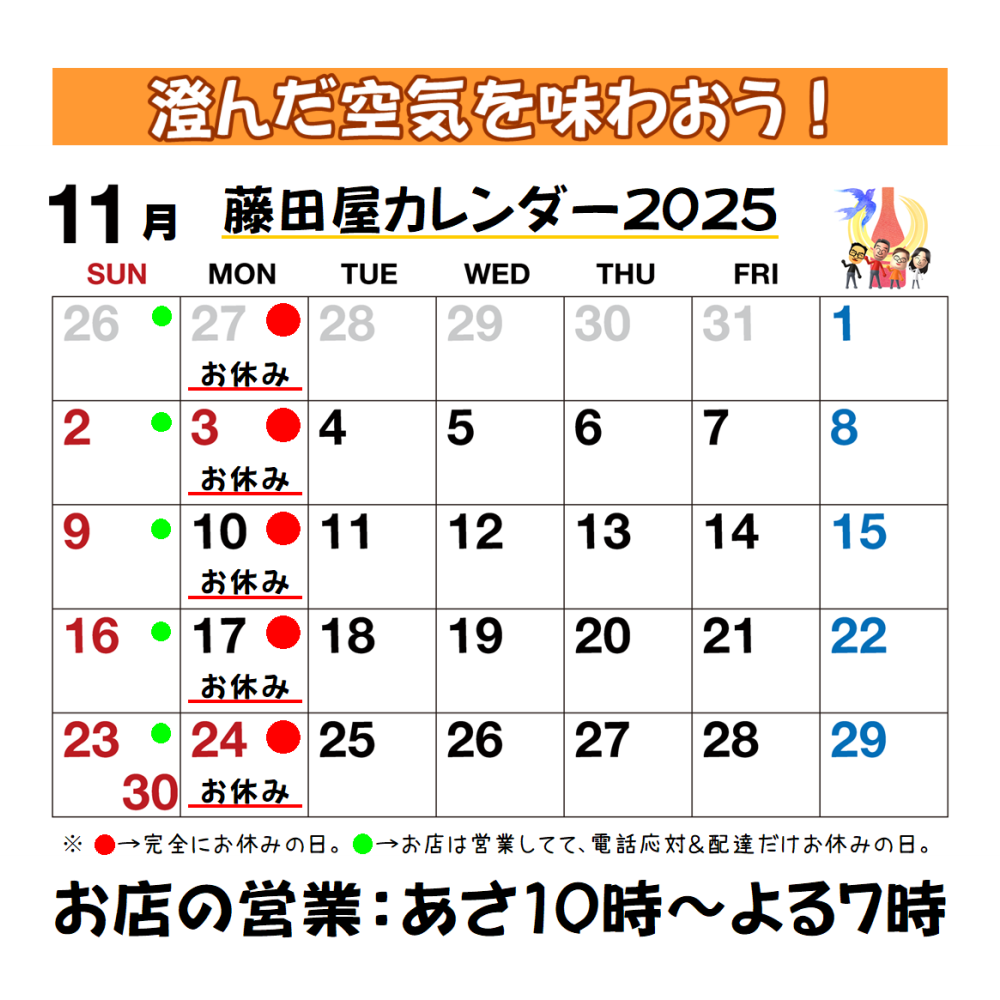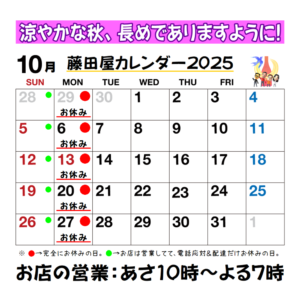 ※配達、ネットショップ業務等の営業日程は、別の「営業日カレンダー」のページをご参照ください。